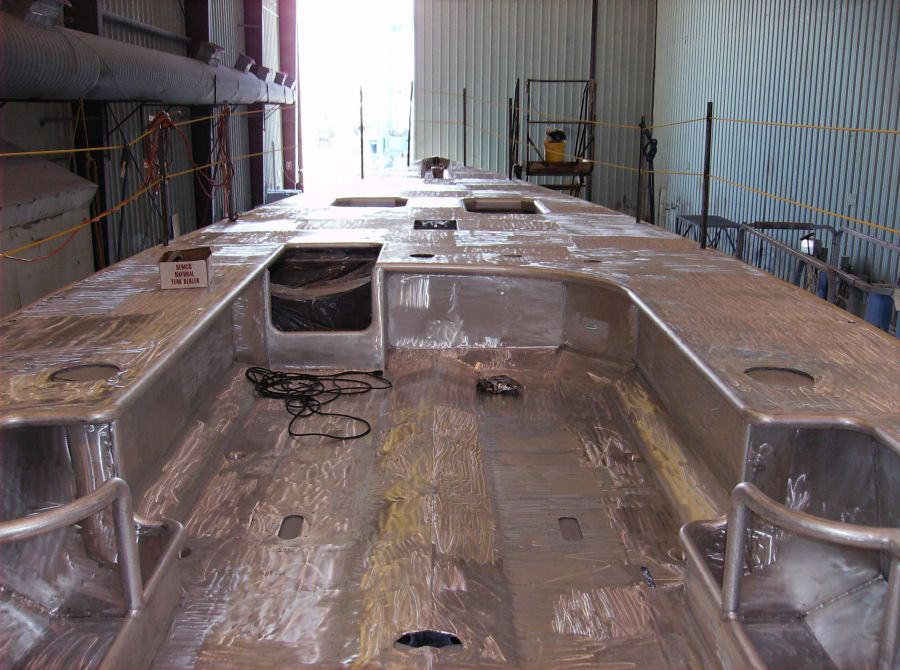 As much demo work as possible was completed while she was still in the water. Welded splash rails were cutoff around the mast and systems were removed. Design work progressed on the deck modifications and subcontractors were lined up. A new winch package was ordered as were hydraulics and deck hardware.